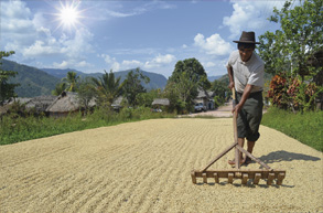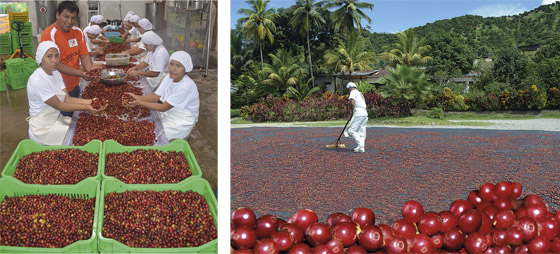 The harvest of mature coffee cherries, dried in the sun and then stored for seven months before final processing, resulting in a high quality coffee with a mild sweet taste.