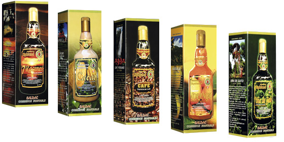 We produce a powerful line-up of liquors and aphrodisiacs that contain high levels of honey, pollen, propolis, royal jelly, and various different kinds of barks and roots from plants of the Amazon such as cat's claw, wampo, chalanca, chuchuwasy, nail huasca, samango and macerated with husk exotic fruits like peach, starfruit and sugar cane liquor. Content: 750 ml.